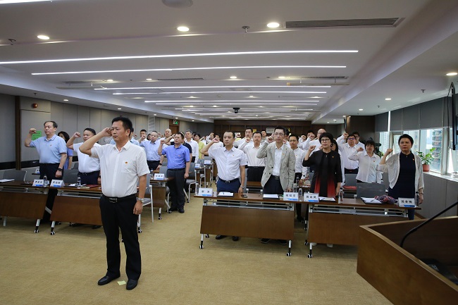 重温入党誓词环节,在集团党委副书记、总经理王昌栋的领誓下,参加活动的全体党员同志举起右拳,面向党旗庄严宣誓,重温入党时对党和人民作出的庄严承诺。