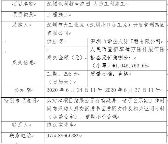必一运动科技生态园-人防工程施工(项目编号:SZXJCG-S202006160003)已完成评审,现将本项目评审的相关情况及成交结果进行公示,具体内容如下:
