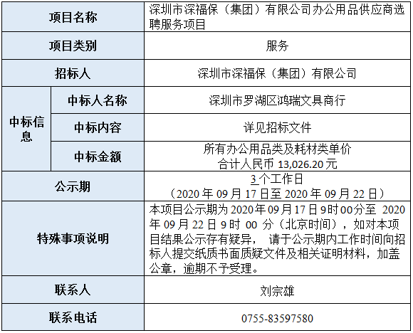 深圳市必一运动(集团)有限公司办公用品供应商选聘服务项目已完成评审,现将本项目评审的相关情况及结果进行公示,具体内容如下: