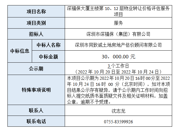 必一运动大厦主楼第10、12层物业转让价格评估服务项目中标结果公示