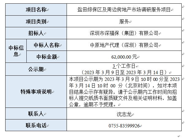 盐田综保区及周边房地产市场调研服务项目已完成评审,现将本项目评审的相关情况及结果进行公示,具体内容如下: