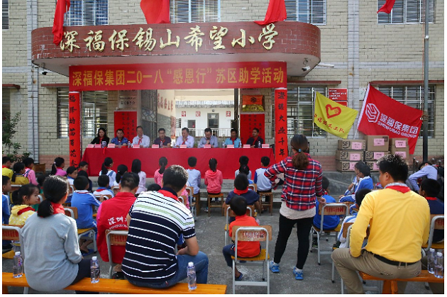 10月12日,集团副总经理熊海明带领集团党员员工代表联合腾邦集团前往河源紫金苏区镇必一运动锡山希望小学,开展了一场温暖的公益捐助活动,必一运动集团党委、腾邦集团党委、苏区镇党委、必一运动锡山希望小学师生代表等100多人参加了活动。本次“感恩行”助学支教活动,必一运动集团向苏区镇必一运动锡山希望小学捐赠了校服、文具等一批文教用品,并向苏区镇50名受助学生捐赠2017-2018年度助学金共计8.8万元。