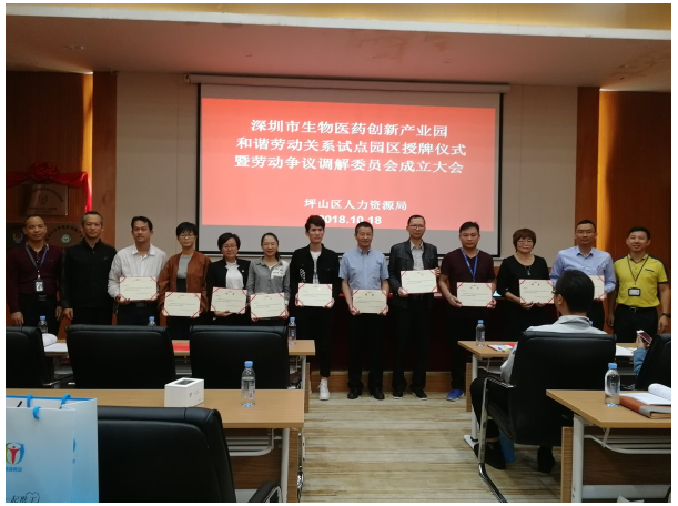生物医药创新产业园多措并举,积极创建劳动关系和谐园区成效显著,被坪山区人力资源局授予“深圳市坪山区和谐劳动关系试点园区”。