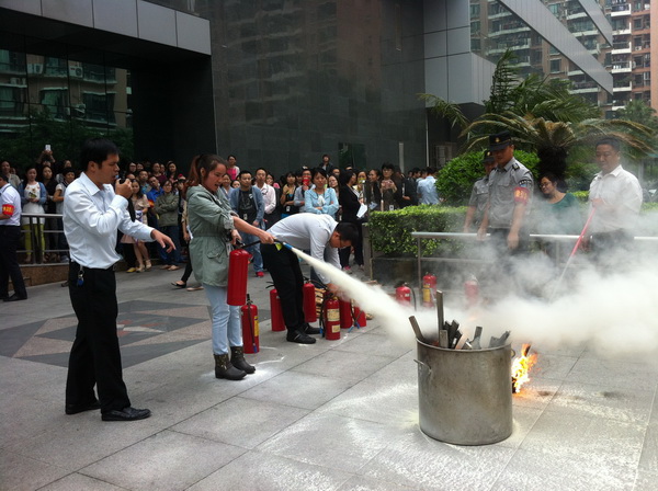 演练内容包括烟雾弹模拟火警、楼宇紧急疏散、派发消防宣传资料、讲述逃生技巧、灭火器的使用实操等。此次演练理论与实际相结合,检验了大厦消防报警系统,提升了大厦内员工的安全意识、自救逃生技能和处置火险能力,达到了预期效果,得到了福保派出所和集团安委办的肯定。(物业公司 必一运动大厦管理处)